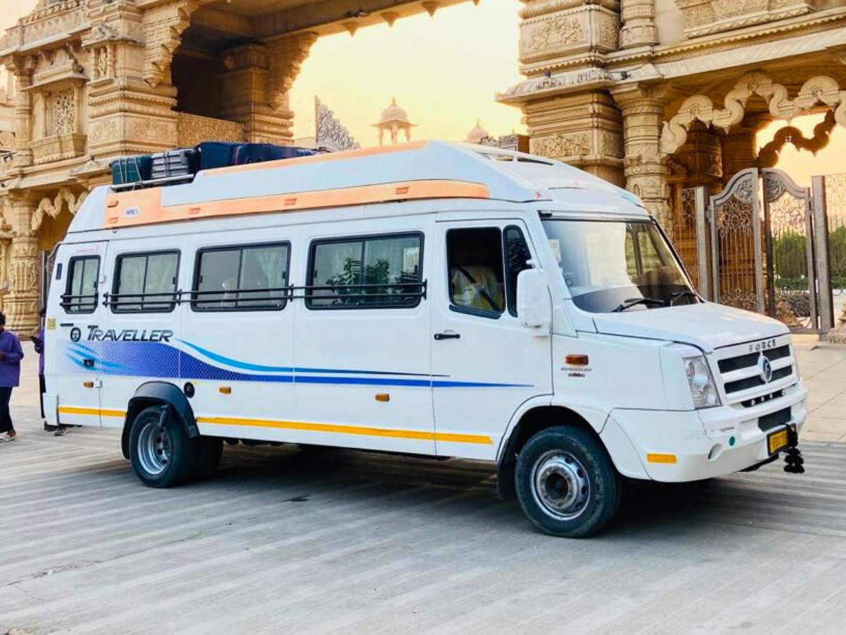 The Force Tempo Traveller (25 Seater) is available for hire at ₹23 per kilometer, making it an excellent choice for large group travel, school trips, corporate tours, wedding events, and outstation journeys. This spacious vehicle provides comfortable seating and a smooth travel experience for passengers traveling together. It is well-maintained and suitable for long-distance trips with adequate luggage space. The vehicle ensures safety, convenience, and comfort for large groups. Please note that toll charges, parking fees, and any applicable state taxes are not included in the per kilometer rate and will be charged separately as per actuals during the trip.