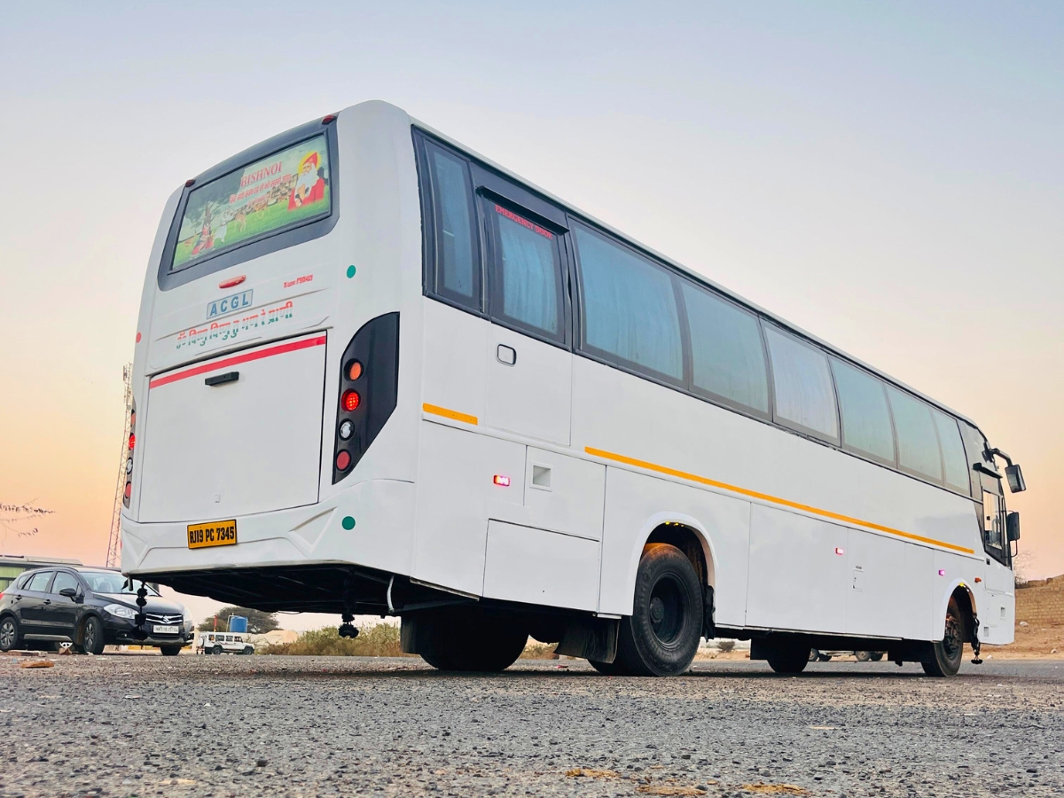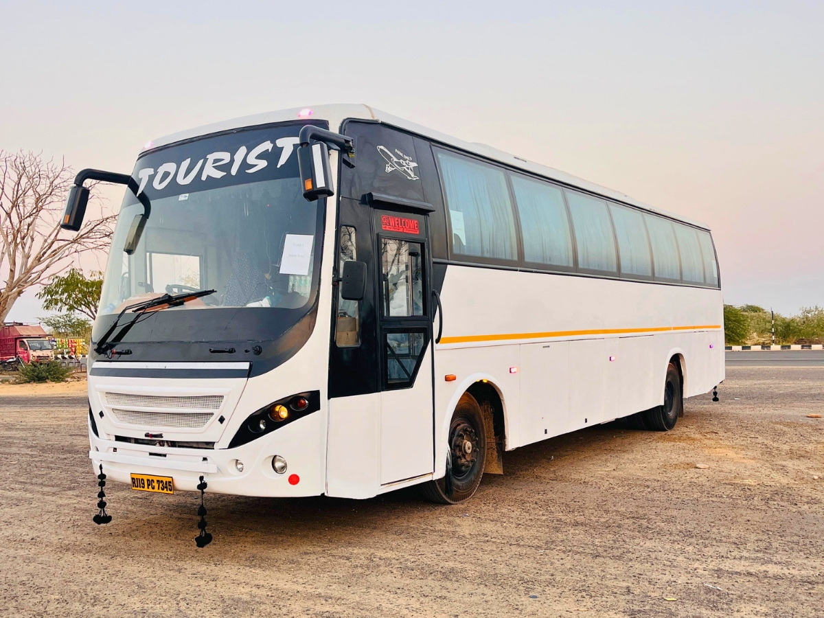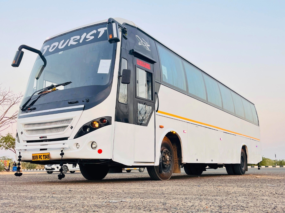 A 49-seater bus is available for hire at ₹55 per kilometer, making it an ideal choice for large group travel such as school trips, corporate events, wedding transportation, pilgrimages, and outstation tours. The bus offers comfortable seating and a smooth journey for passengers traveling together. It is well-maintained and suitable for long-distance travel, ensuring safety and convenience for large groups. With ample seating capacity and luggage space, it is perfect for organized group travel. Please note that toll charges, parking fees, and any applicable state taxes are not included in the per kilometer rate and will be charged separately as per actuals.